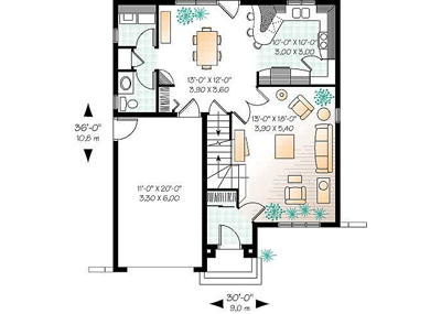 Plan parter. Nivelul cuprinde: living, dining, bucatarie, baie si hol. TRANSVAL