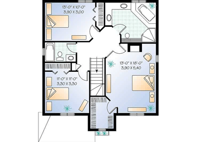 Plan etaj. Nivelul cuprinde: 3 dormitoare si 2 bai. TRANSVAL