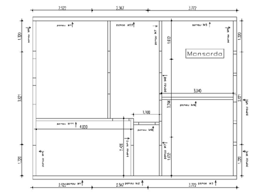 Plan etaj. Nivelul cuprinde: 3 dormitoare, hol si baie. TRANSVAL