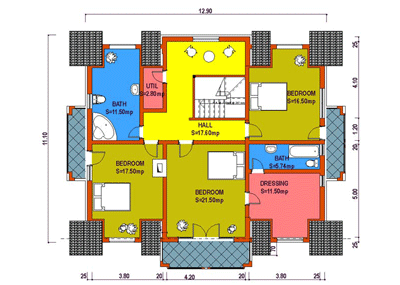 Plan etaj. Nivelul cuprinde: 3 dormitoare, 2 bai, un hol si un dressing. VANDROM TRUST