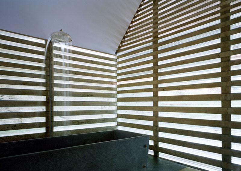Alternanta dintre panourile de lemn de stejar si cele de sticla creeaza o lumina filtrata plina de mister. Efectul de dematerializare obtinut prin refractie si reflectare creeaza o atmosfera subacvatica. Modul in care lumina se deplaseaza in interiorul casei de-a lungul unei zile captiveaza atentia celor ce ocupa spatiul interior.
