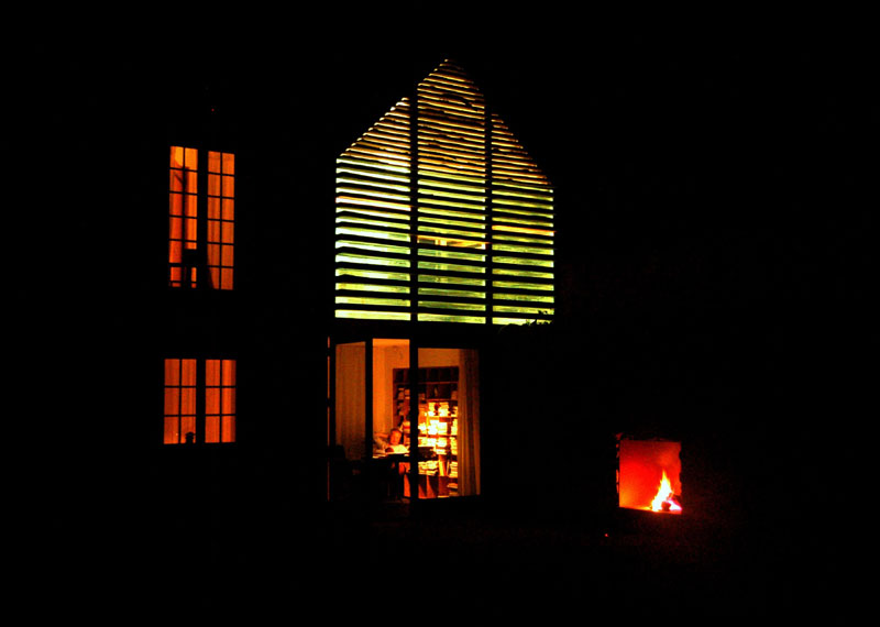 In schimbul demolarii si reconstructiei, ideea de refugiu a fost intarita prin camuflare; forma si volumetria noii anexe imita si subliniaza structura existenta. Casa trebuia sa para neschimbata din exterior si sa-si dezvaluie adevarata identitate in momentul intrarii. Secventa de intrari are scopul de a descuraja musafirii nepoftiti. Spatiile cele mai intime au devenit cele mai generoase si rafinate deoarece intreaga constructie celebreaza singuratatea.