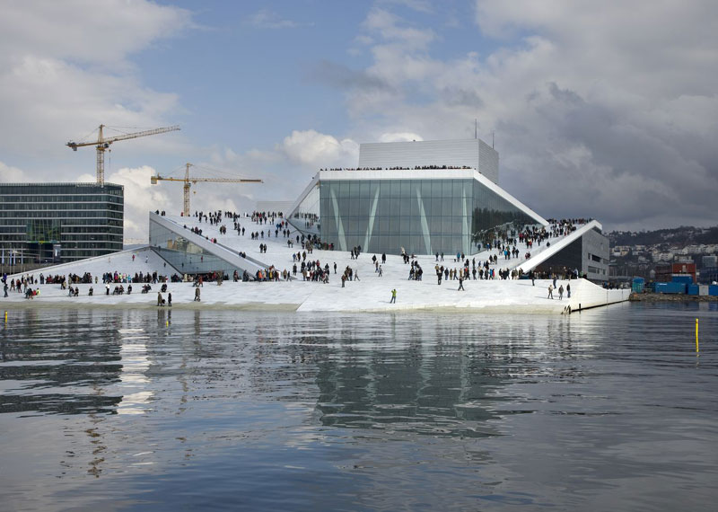 Cladirea Operei din Oslo, semnata de arhitectii de la Snohetta, celebrii pentru noua Biblioteca din Alexandria (2002), constituie cel mai mare centru cultural din Norvegia.