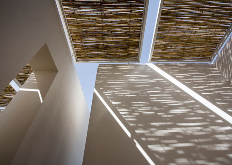Exteriorul cuprinde un mare bazin de apa, o imagine cu o puternica simbolistica in aceasta zona susbsahariana. Bazinul creeaza separarea spirituala dintre macrocosmosul extern al spitalului/lumii si microcosmosul intern al cladirii alcatuite din doua cuburi albe nealiniate, ce sunt legate intre ele prin intermediul unui covor semi-transparent de frunze de palmier. Interiorul celor doua cuburi cuprinde doi copaci, ce atribuie o semnificatie sacra acestor spatii profane, fiind elemente naturale in cuprinsul unor spatii artificiale.