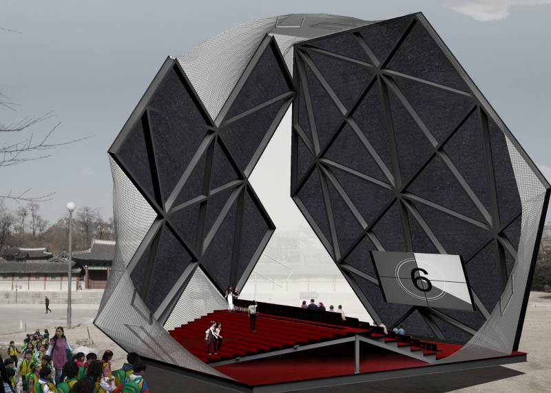 Fiecare dintre cele 4 programe culturale va functiona pe suprafete de forme unice, avand cadrul din otel, acestea cuprinzand un hexagon, o cruce, un patrat si un cerc. Asadar, in timp ce constructia se roteste pentru diferitele evenimente, pardoseala devine perete si peretele devine tavan.