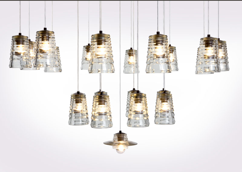 Realizata din sticla modelata, sub aspectul a trei serii de forme diferite, Bowl, Lens si Tube, colectia inglobeaza incluziunile si imperfectiunile unui proces de manufactura. Totodata, cablurile sunt rezistente la rupere.