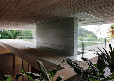 Exista o legenda conform careia regiunea orasului colonial Paraty si Angra dos Reis (intre São Paulo si Rio de Janeiro) cuprinde 365 de insule, cate una pentru fiecare zi a anului. Doua blocuri de beton armat se adapostesc unite ferm in versantul uneia dintre aceste insule; sunt doua prisme moderne aflate intre rocile mari, colosale ale coastei braziliene. Ansamblul de volume rasare din munti, aproape la travers cu plaja, pe o consola de 8 metri. Va prezentam, in cele ce urmeaza, un proiect executat de Marcio Kogan, alaturi de Suzana Glogowski, proiect ce se remarca prin spectaculozitate si nonconformism. Fotografiile prezentate au fost realizate de Nelson Kon.