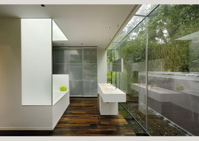 Configuratia sitului este reluata in planul casei. Acesta este, de asemenea, impartit in trei fasii. Zona de est, pozitionata spre strada, contine functiunile mai putin private: intrarea, zona de invatat, bucataria si livingul, in vreme ce zona de vest, cea mai indepartata de strada, este rezervata unor activitati mai intime: un coridor care functioneaza ca spatiu pentru vizionarea televizorului, dormitoarele si baia. Astfel, caracterul functiunilor devine, treptat, din ce in ce mai intim.