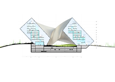 Echipa BIG a castigat locul I la competitia internationala pentru Biblioteca Nationala Astana, din Kazakhstan. Cladire impresionanta, aceasta contopeste cercul, rotonda, arcul si yurt-ul asiatic, sub forma benzii lui Mbius. Claritatea cercului, curtea redata de rotonda, deschiderea arcului si silueta delicata a yurt-ului sunt combinate pentru a crea un nou monument national, local si universal, contemporan si atemporal, unic si arhetipal, in acelasi timp.