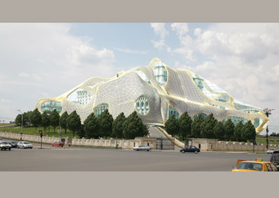 Astfel, Casa Poporului si intreaga ei incarcatura ideologico-istorica ar putea fi imbracata in haina vremurilor celor noi, obtinand cu un efort mai mic un monument si mai mare si mult mai actual ca forma si expresie. Am redeveni astfel numarul unul la cladiri in lume, am fi avangardisti arhitectural si, deci, mandri. Eu zic ca merita, multumim DuPont ca ai inventat materialele care fac posibil acest lucru.