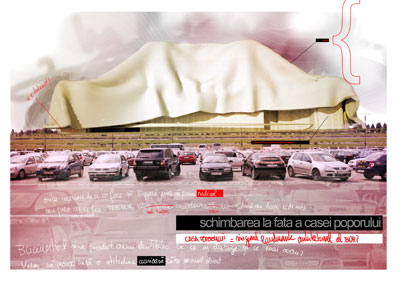 Propunem o redescoperire a ceea ce reprezinta Casa Poporului. O vom acoperi cu un val metaforic de corian alb ca pe o statuie inca nedezvelita, neterminata - gestul final al dezvelirii apartinand mai ales bucurestenilor. Ce se ascunde in spatele valului? Nu Casa Poporului, ci Bucurestiul pe care trebuie sa-l (re)descoperim.