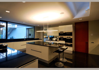 Eliminand o cladire veche si respectand copacii nativi, ce isi insusesc valoarea peisagistica a sitului, spatiile sunt organizate sub forma literei “H”, avand un al doilea nivel deasupra aripii centrale, si urmeaza aceeasi relatie spatiala a casei, pe care familia a lasat-o. Aceasta distribuire a spatiilor in forma literei “H” se adapteaza foarte bine formei sitului, fara a interveni asupra copacilor si creand diferite gradini, care le valorifica prezenta din interior.