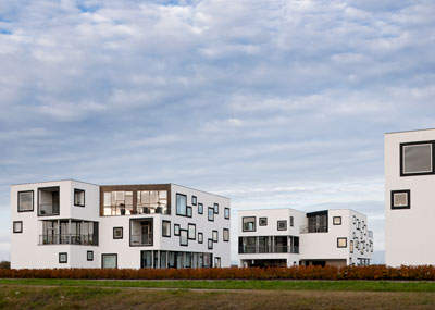 Decupajele blocurilor sunt alese in locul in care vor oferi conditiile optime pentru panorama si patrunderea luminii in adancimea cladirilor. Pe langa acestea, decupajele creeaza si cate o terasa privata pentru fiecare etaj. Cladirile, aparent rigide, capata o expresie dinamica, datorita golurilor aleatorii si de dimensiuni diferite.