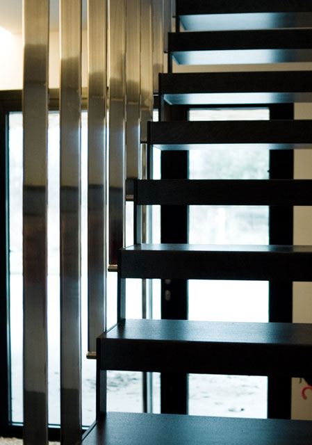 Casa pe care v-o prezentam in editia de astazi este una neconventionala, atipica zonei in care este situata. Cei de la Muru&Pere, o companie de arhitectura mica, au dorit sa integreze cladirea in mediul inconjurator, realizand o legatura intre interior si exterior. Totodata, invelisul exterior din lemn ce aminteste de un cuib de pasare izoleaza, in acelasi timp, camerele de privirile din exterior, creand efectul unei oglinzi.