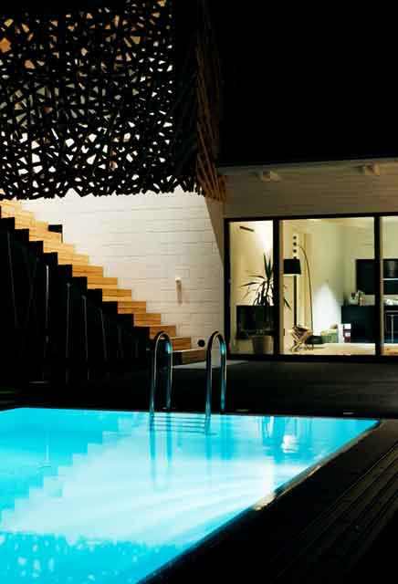 Casa pe care v-o prezentam in editia de astazi este una neconventionala, atipica zonei in care este situata. Cei de la Muru&Pere, o companie de arhitectura mica, au dorit sa integreze cladirea in mediul inconjurator, realizand o legatura intre interior si exterior. Totodata, invelisul exterior din lemn ce aminteste de un cuib de pasare izoleaza, in acelasi timp, camerele de privirile din exterior, creand efectul unei oglinzi.