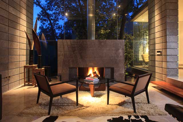 In camera de zi, conceputa aproape ca o cutie de sticla, se poate experimenta privelistea oferita de varfurile din Sierra Madre de la distanta si gradina din jurul casei. Datorita amplasarii casei in zona de munte, unde iernile pot fi extraordinar de reci, a fost amenajat un semineu, in jurul caruia familia se poate aduna seara.