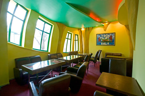 Cladirea este foarte primitoare si cunoscuta ca fiind cea mai fotografiata cladire din Polonia. Construita pe trei niveluri plus mansarda, Crooked House pune la dispozitia turistilor mici cafenele, baruri si magazine. Comunicarea cu etajul al treilea este asigurata de un lift exterior care permite vizitatorilor sa se delecteze cu privelistea imprejurimilor, iar intre etajele inferioare se circula doar pe scari. Pe fiecare nivel, decorurile din casa scarii sunt diferite si construite din diverse materiale care continua si la interior povestea conceptului de cladire fabuloasa.