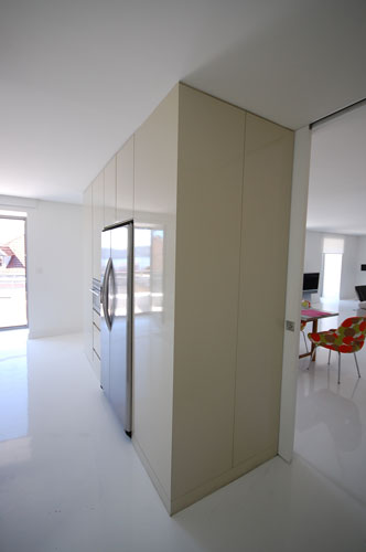 Designul acestui apartament se afla la limita dintre minimalism si contemporan, punandu-se mare accent pe tonuri si materiale care sa capteze si sa reflecte cat mai multa lumina.