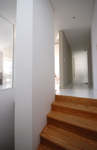 La nivel functional, s-a schimbat locul bucatariei, mutand-o spre terasa, pentru a putea profita de deschiderea catre rau. Separarea dintre living si bucatarie se realizeaza prin intermediul unei piese de mobilier si al doua usi glisante. In acest mod, bucataria formeaza un spatiu fluid, ce se afla in stransa legatura cu zona de zi, si s-a obtinut intreaga extindere a fatadei dinspre strada intr-un singur plan, deschizandu-se spre exterior prin patru travee.