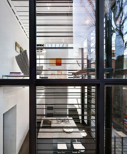 Extensia noua adaposteste o bucatarie, un living, un balcon si un acoperis terasat, finisat cu deck-uri din lemn. Denumirea casei - Barcode - provine de la asemanarea barelor orizontale din otel cu un cod de bare. Casa se deschide catre strada prin doua fatade de sticla, iar singura legatura cu constructia veche se realizeaza la primul nivel, prin intermediul unei usi.