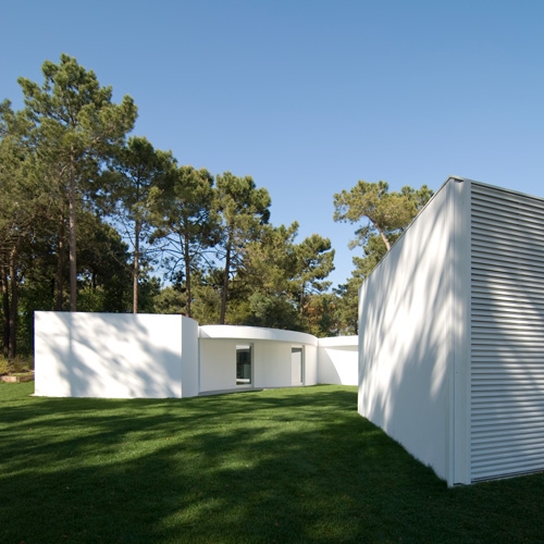 Intreaga constructie, datorita formei sale si a sitului pe care este amplasata, este o adevarata oaza de linista. Forma ondulata, organica, duce la nasterea unei curti interioare. Albul absolut al casei creeaza un fundal perfect pentru piesele de mobilier de designer, consacrate.