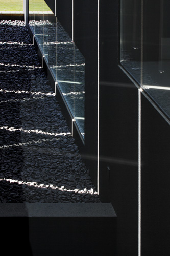 Vila pe care v-o prezentam reprezinta un joc continuu intre solide si transparenta, care duce la crearea, in cele din urma, a unui joc de umbre si lumini. Pentru a accentua acest lucru, arhitectii au marcat planurile cu ajutorul materialelor, iar piscina suspendata devine punctul focal al intregii constructii.