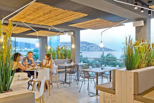 Prin aceasta impartire s-a urmarit amplasarea barului in partea posterioara, astfel incat sa fie paralel cu marea. Bucataria este situata, de asemenea, in aceasta zona, impreuna cu accesul principal, in felul acesta, obtinandu-se mai mult spatiu liber pentru zona de mese si pentru cea de bar.
