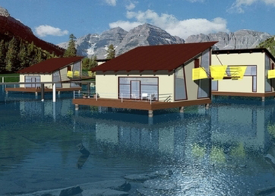 CasaYacht este formata dintr-o locuinta (peste 300 mp) pozitionata pe piloni de fundatie si un doc plutitor detasabil, cu flotabilitate variabila, care ridica locuinta de pe suportul ei solid si o face sa pluteasca si sa navigheze pe apa, intocmai unui iaht, dar la un pret de zece ori mai mic. Ca arhitectura, nu exista, practic, limite, orice fiind posibil, conform dorintelor cumparatorilor. Fiecare casa este construita pe o platforma solida de 12 metri latime si 24 metri lungime, pozitionata pe o structura speciala (pat cavalet) si are un regim de inaltime de doua niveluri plus acoperis-terasa.