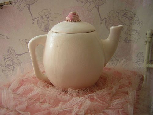 Ceainic Pink Rose - ceainic din ceramica glazurata alb, roz si aur coloidal.