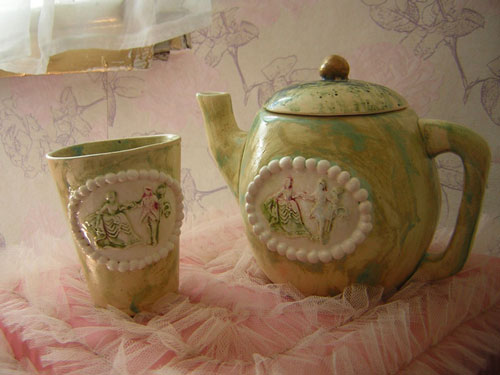 Set Vintage Lady - set pentru ceai din ceramica glazurata, decor cu aur coloidal.handmademylove