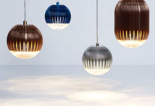 LED-urile in sine sunt pozitionate in interiorul lampii si sunt fixate pe o placa de circuit care are si scop decorativ. Lumina este amplificata de abajurul cu efect de lupa care genereaza forme geometrice spectaculoase pe suprafata iluminata. Fin este disponibila in varianta de masa sau suspendata.