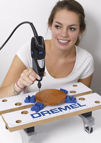 Desenati un cerc pe o bucata de lemn (diametru de 12 centimetri) si taiati cu unealta Dremel 300, cu mandrina SC402 SpeedClic, freza de taiere multifunctionala 561 si dispozitivul pentru taieri liniare si circulare 678 Dremel. Repetati procedura pentru a crea un cerc mai mic in lemn (diametru de 5 centimetri). Apoi, taiati sase bete de bambus (3 x 30 de centimetri, 3 x 36 de centimetri, 1 x 10 centimetri lungime) cu ajutorul uneltei Dremel 300, cu mandrina SC402 SpeedClic si discul de taiere a lemnului SpeedClic SC544. Apoi atasati burghiul pentru lemn Dremel 636 numarul 4 la unealta Dremel 300 si realizati sase orificii la distante egale in jurul cercului mare al lemnului, doua in mijloc si inca patru de 2 centimetri, pentru prinderea setului finalizat de clopotei. Dupa aceea, realizati doua orificii in mijlocul cercului mai mic din lemn si doua orificii filetate pe fiecare parte a varfurilor celor sase bete de bambus, iar una in varful bucatii mici de bambus.