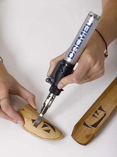 Utilizati varful de ars lemnul al uneltei Dremel Versatip si gravati dupa model bambusul si liniile din jurul cercurilor de lemn.