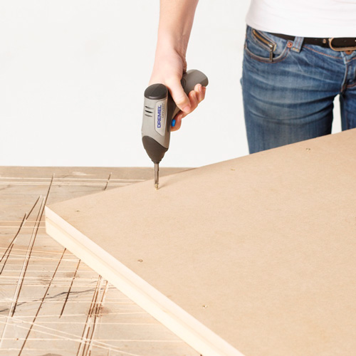 Fixati partea laterala si marginea de jos a ramei pe placa suport, insuruband placa in partea din spate a ramei cu ajutorul unei surubelnite manuale sau electrice si al unui surub de 35 de milimetri.