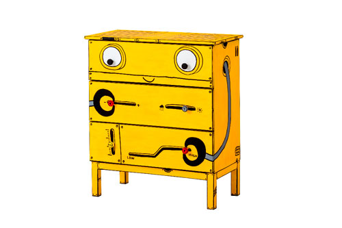 Magazinul IKEA a invitat 3 artisti plastici sa personalizeze cateva comode TARVA, rezultand multe comode cu multe personalitati, printre care o comoda pisica, o comoda robotel, o comoda de vise sau o comoda cu 3 perechi de ochi.