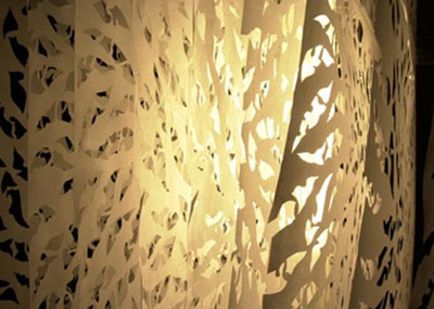 Astfel se pastreaza amandoua principiile: si cel in care lumina este utilizata si in stare pura si si cel prin care se pastreaza ideea de corp luminator-candelabru, care functioneaza atat estetic cat si pentru iluminare. Ideea in sine de a descompune forme (siluete) ale corpurilor deja utilizate, in planuri, un fel de 3D (3 dimensiuni) realizat din multe 2D- uri, au avantajul ca nu propun alte forme si prin urmare nu le neaga pe cele vechi, si ca propun un alt mod de a le citi, mult mai interesant. Lucrare: "Paperbark", artist: Lee Choo Yeow, 29 de ani
