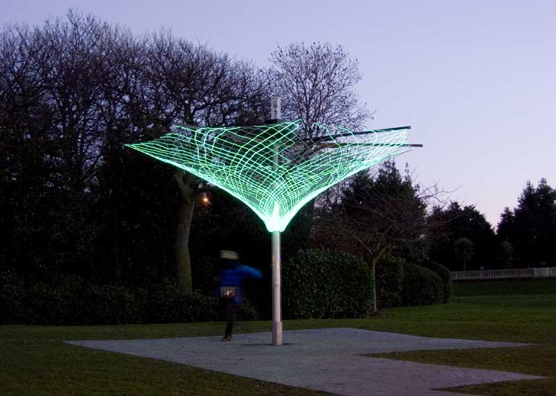 Versiunea initiala era setata sa raspunda la interactiunea si activitatea indivizilor care orbiteaza umbrela. Proiecteaza o umbra sonica luminoasa. Atmosfera de ritmuri muzicale, armonii si tipuri luminoase este realizata de miscarea umana, in stare activa sau pasiva. Materialul ce emite lumina este realizat ca un mileu din fibre electroluminiscente. Acest model zabrelit este animat in concert cu sunetele produse de mediu si ilustreaza vizual pozitia vizitatorilor in interiorul constelatiei lor.