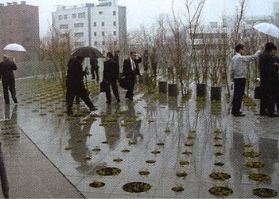 Pentru gradina Keio, imaginea retinuta a fost o fotografie aeriana a unei vai bordata de padure.O portiune de peisaj natural ales cu grija pentru ca proportiile sale sa se apropie de cele ale elementelor pe care le gasim in gradina lui Noguchi.