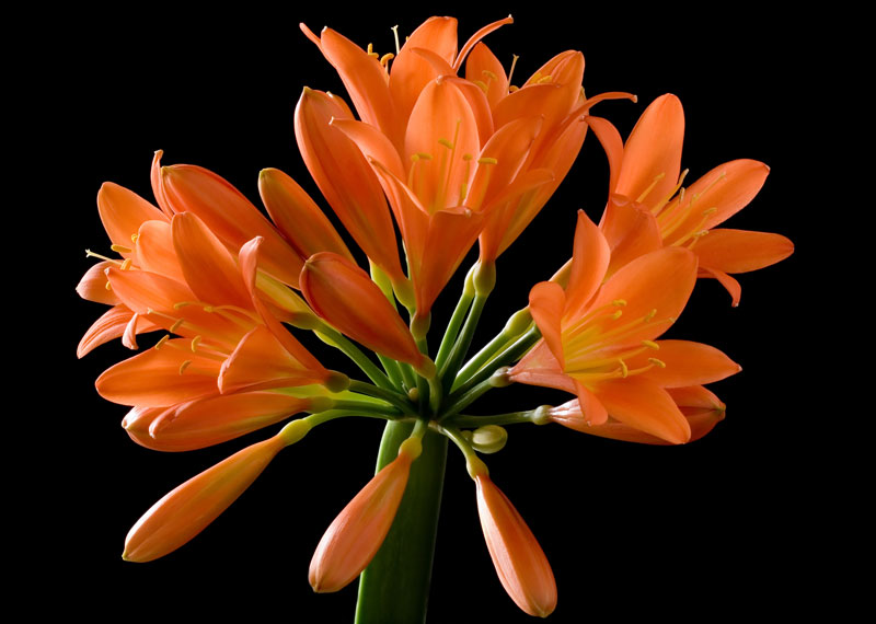 Clivia se caracterizeaza prin frunze de nuanta inchisa, lucioase, subtiri si lungi, din mijlocul carora, pe tije florale groase si inalte se formeaza o inflorescenta de flori mici colorate in rosu-oranj.