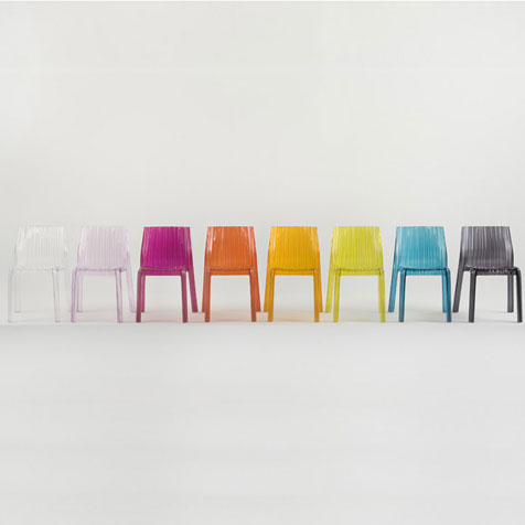 Frilly - scaun din masa plastica, transparenta de sticla, culori tari, cu design semnat de Patricia Urquiola pentru Kartell, cu rezistenta pentru folosinta outdoor. Morphoza-atelier de interioare