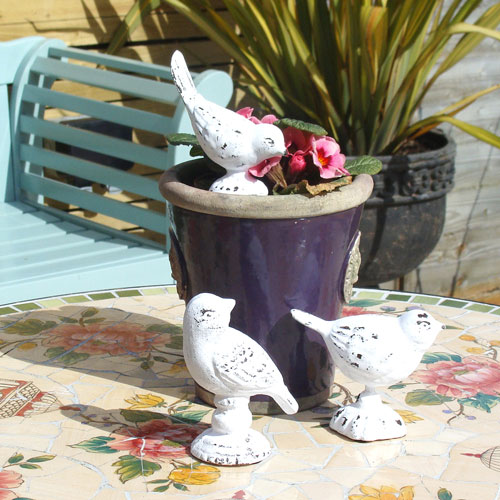Nu in ultimul rand, intrucat detaliile sunt cele care fac diferenta, decoreaza-ti gradina cu accesorii din ceramica sau din lut. Acestea nu trebuie sa fie de dimensiuni mari; pe cele mici, le poti amplasa langa ghivece, pentru a iesi in evidenta. Iti recomandam sa optezi pentru unele albe, cu aspect vintage, pasarile fiind cele mai cautate decoratiuni. De asemenea, nu uita de casutele decorative pentru pasari, din lemn.