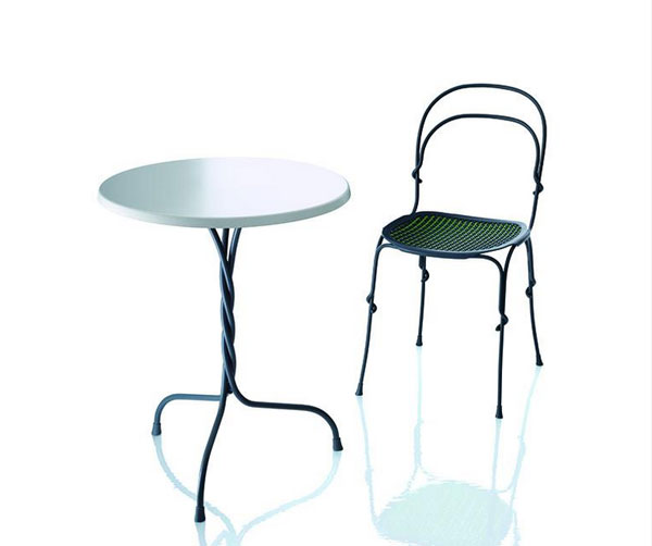 Vigna diam. 60 cm - Inspirat de vita de vie si ai sai carcei, Martino Gamper semneaza Vigna, un scaun stivuibil potrivit atat pentru interior, cit si pentru terase. Baza mesei este realizata din tije subtiri de otel tratat si vopsit electrostatic, iar blatul din Werzalit alb (un compozit din lemn, rasina si melamina), cu o grosime de 26 mm. Picioarele sunt disponibile pe urmatoarele culori: alb, roz gri, violet, gri granit sau gri-lila. Dimensiuni: diametru 60x73 cm. Pret: 2.131 lei.