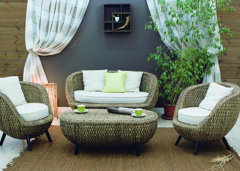 Te-ai plictisit de mobila patratoasa si formele ca de pe vremea bunicii? Ratanul este un material excelent pentru mobilierul in forme curbe, avangardiste – singura limita e imaginatia! Mobexpert: Set Eggs realizat din impletitura de frunza de bananier si ratan, finisaj natur. Canapea de 2 locuri, dim. 160 x 80 x 80H cm. Fotoliu, dim. 80 x 80 x 80H cm. Masuta ovala, dim. 116 x 63 x 40H cm.