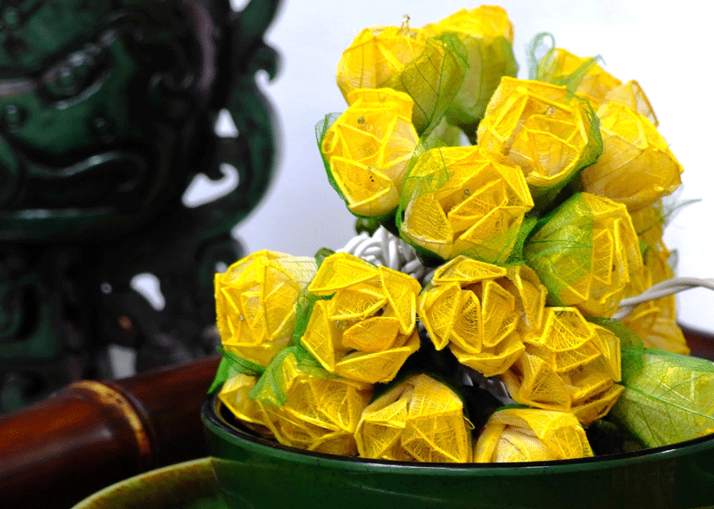 Ghirlande luminoase, realizate din frunze naturale (arborele de cauciuc), pret 45 RON. EXOTIQUE