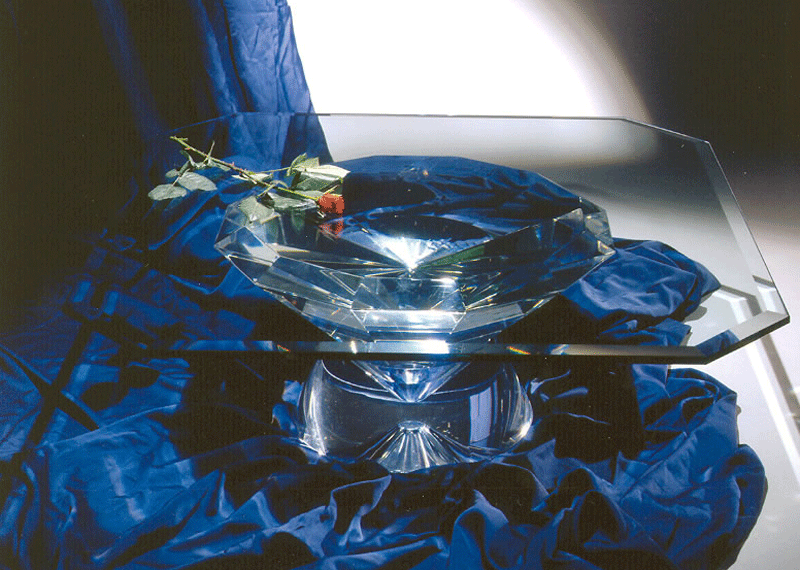 Masa decorativa pentru cafea realizata integral din sticla de 10 mm, si diamant realizat din metacryle. Colectia: Sclupture Dimensiuni: 80x80x40 cm masa si 39x39x39 cm diamant Pret: 8700 EURO + TVA/ masa 8700 EURO + TVA/ diamante Produs in Italia. In exclusivitate in Romania prin INTERIOR STORE