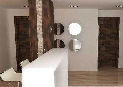 Lemnul si piatra au fost aduse pentru a incalzi spatiul si a taia din raceala data de culori si forme geomerice simple. Culoarea lemnului ce imbraca stalpul de sustinere al casei se ragaseste si la usile care ofera intimitate incaperilor locuintei.