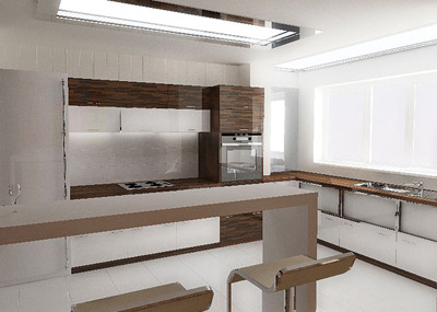 Invecinata cu livingul si diningul, bucataria se prezinta in nuante sobre. Utilata la superlativ si cu blatul de lucru dispus pe doua laturi, este oricand gata pentru pregatirea cinei! Mobilierul iese in evidenta prin liniile fine si prin finisajele de calitate.