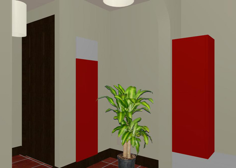 Marirea holului de la intrare prin desfiintarea debaralei - a facut posibila amplasarea unui cuier cu un design foarte modern in partea stanga a usii de acces in locuinta.