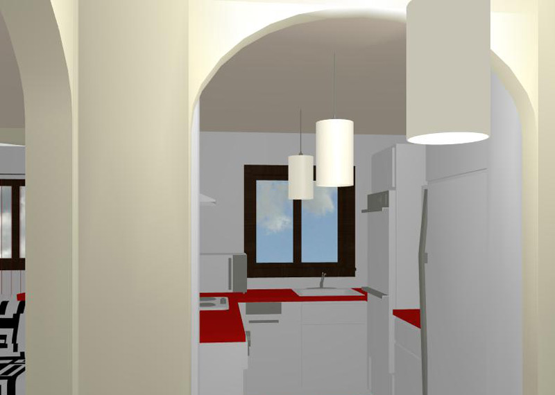 Holul a fost marit optic si prin renuntarea la usa bucatariei si la usa livingului, in locul acestora fiind realizate doua arcade.