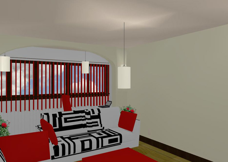 In locul balconului a fost amenajata o zona de lucru. Zona de lucru unde au fost amplasate un birou pentru calculator si un dulap a fost separata de restul livingului atat prin realizarea unei arcade, cat si prin schimbarea coloristica a peretilor.